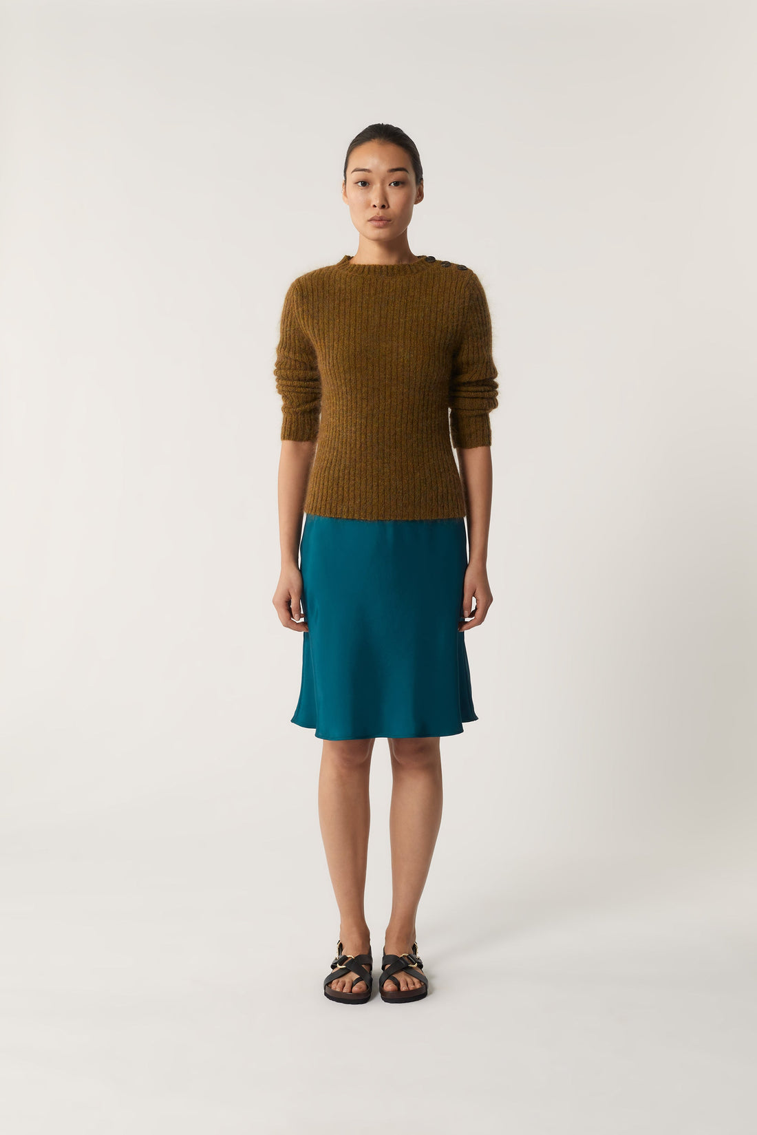 Emerald fluid twill skirt