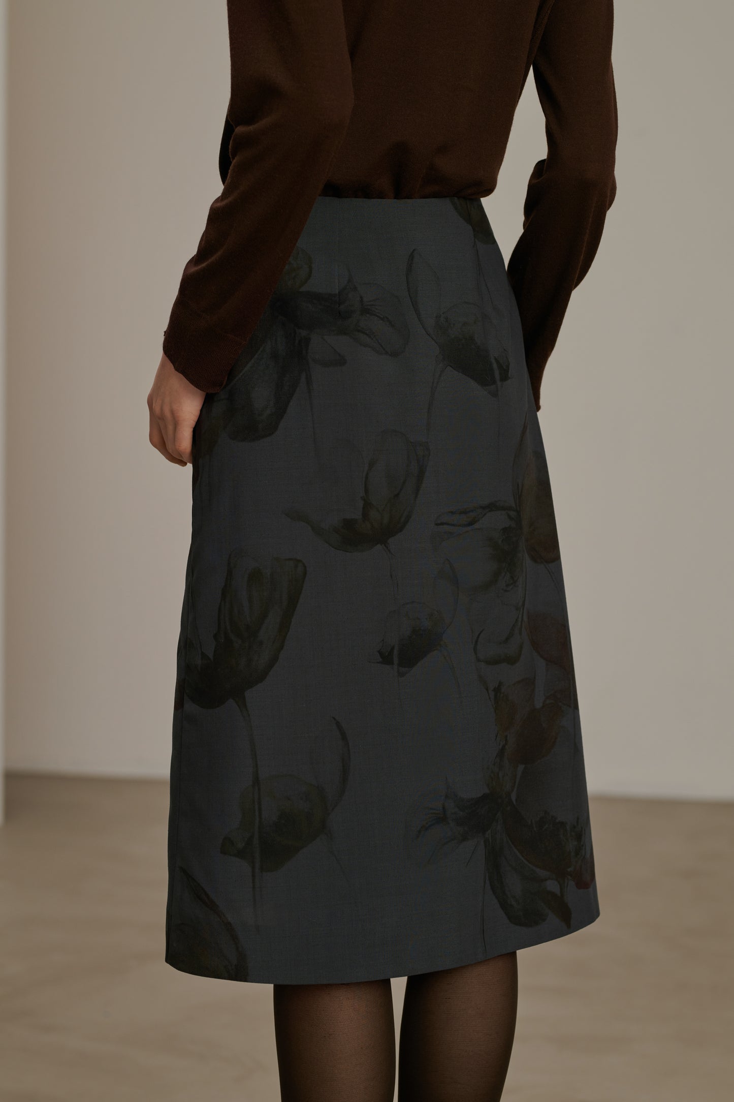 VALET is a skirt crafted from printed wool canvas. Perfect for a modern and sophisticated look, this skirt stands out with its unique print, adding a touch of creativity to your outfits.