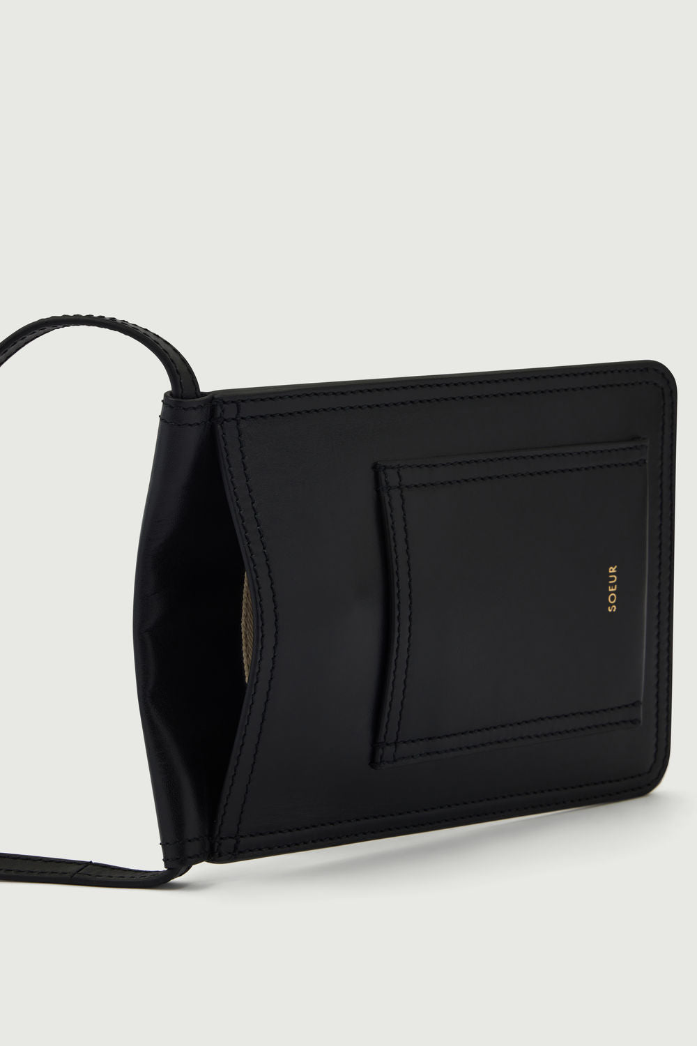 clutch baldy Smooth leather flat pouch with shoulder strap