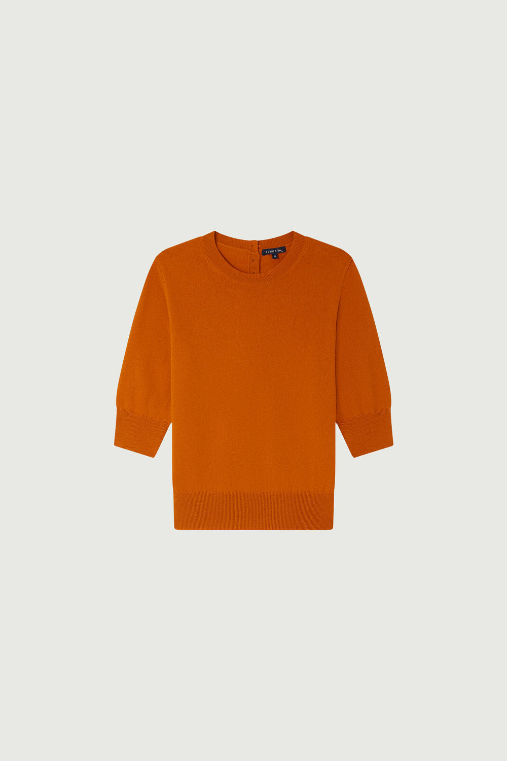 BAIE is a small short-sleeved jumper, like a winter T-shirt. Knitted in cashmere yarn, its softness is worn directly on the skin. It has a straight and loose fit, away from the body to ensure comfort and ease.