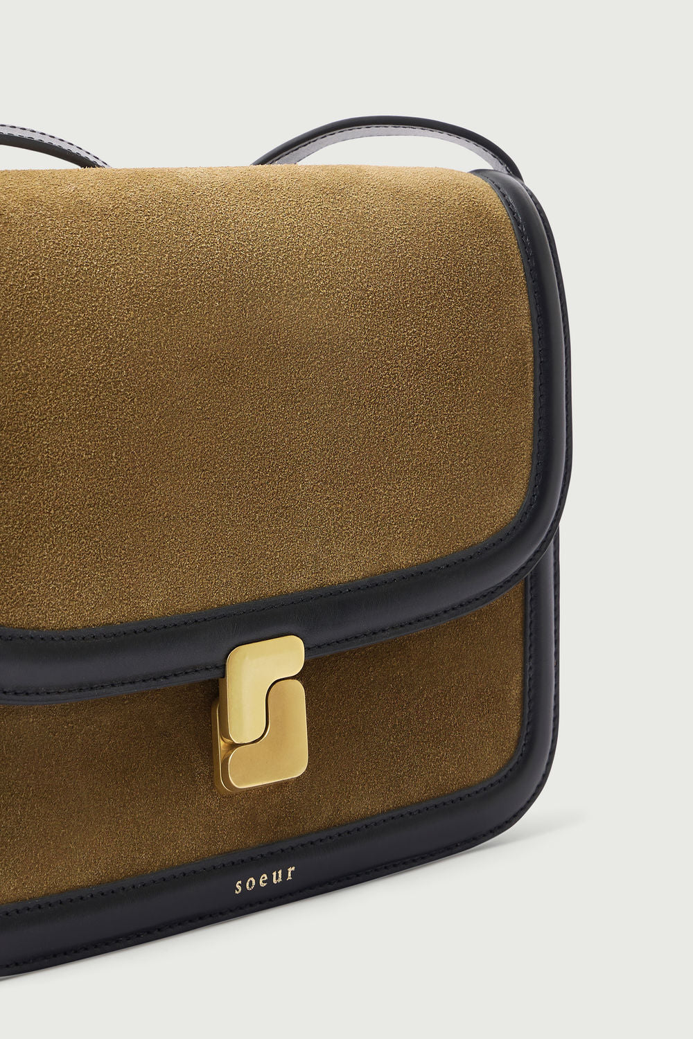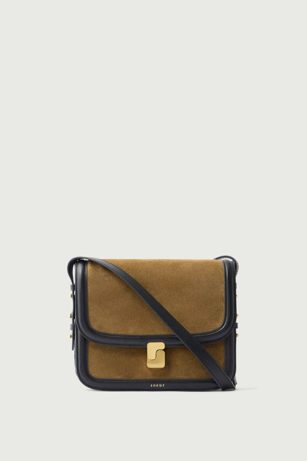 bellissima maxi bag Two-material bag in bronze split leather and smooth black leather
