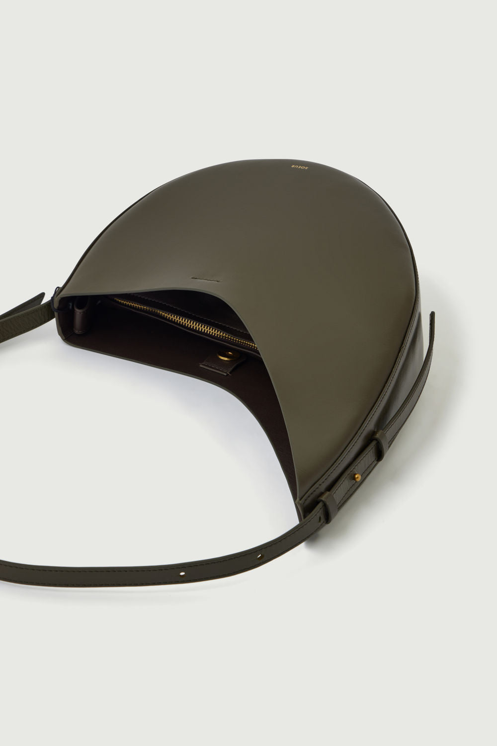 - Removable lambskin leather pouch inside the bag, secured with a snap button
